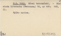 Projekt Digitalizacja fiszek z Bibliografią Tatr i Podtatrza Witolda Henryka Paryskiego jest finansowany ze środków Ministra Kultury i Dziedzictwa Narodowego oraz Tatrzańskiego Parku Narodowego.
