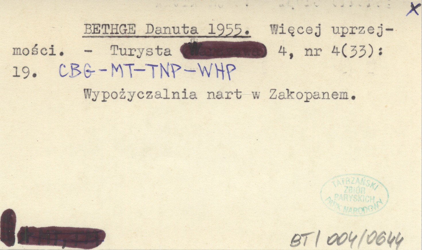 Turysta, 4, nr 4(33): 19. Wypożyczalnia nart w Zakopanem.