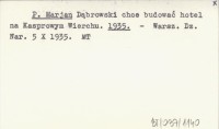 P. Marjan Dąbrowski chce budować hotel na Kasprowym Wierchu. 1935