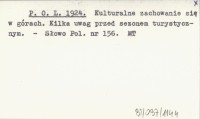 P. O. L. 1924 Kulturalne zachowanie się w górach. Kilka uwag przed sezonem turystycznym.
