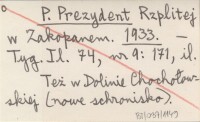 P. Prezydent Rzplitej w Zakopanem. 1933