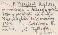 P. Prezydent Rzplitej w rozmowie z delegacją górali, którzy przybyli na święto Niepodległości do Warszawy. 1934