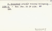 P. Prezydent przyjął wczoraj delegację... 1938 a