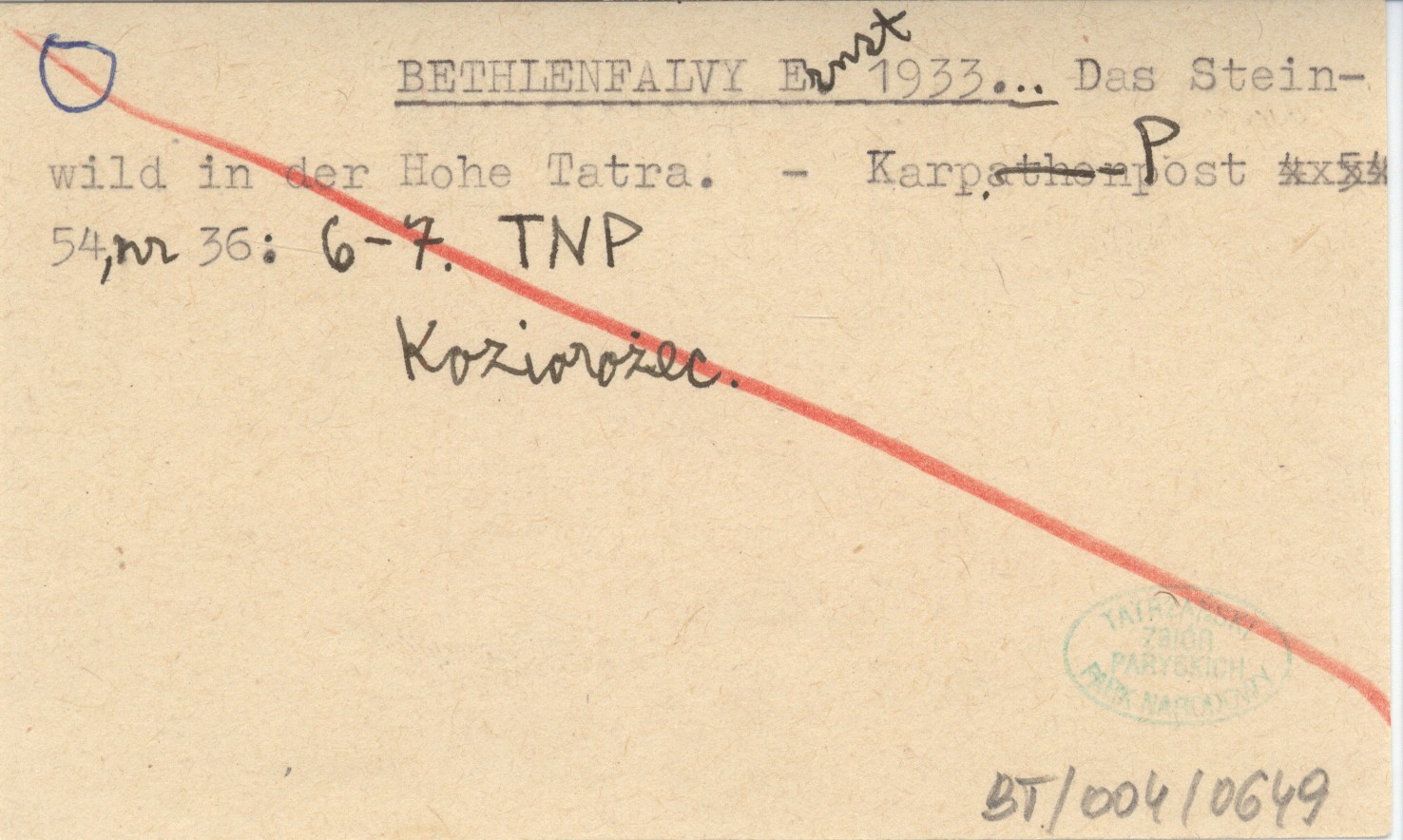 BETHLENFALVY Ernst 1933... Das Steinwild in der Hohe Tatra.