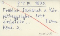 P. T. E. 1870 Fröhlich Dávidnak a Kárpáthegyságben tett észlelete...