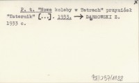 P. t. "Nowe koleby w Tatrach" przyniósł "Taternik" [...]. 1933