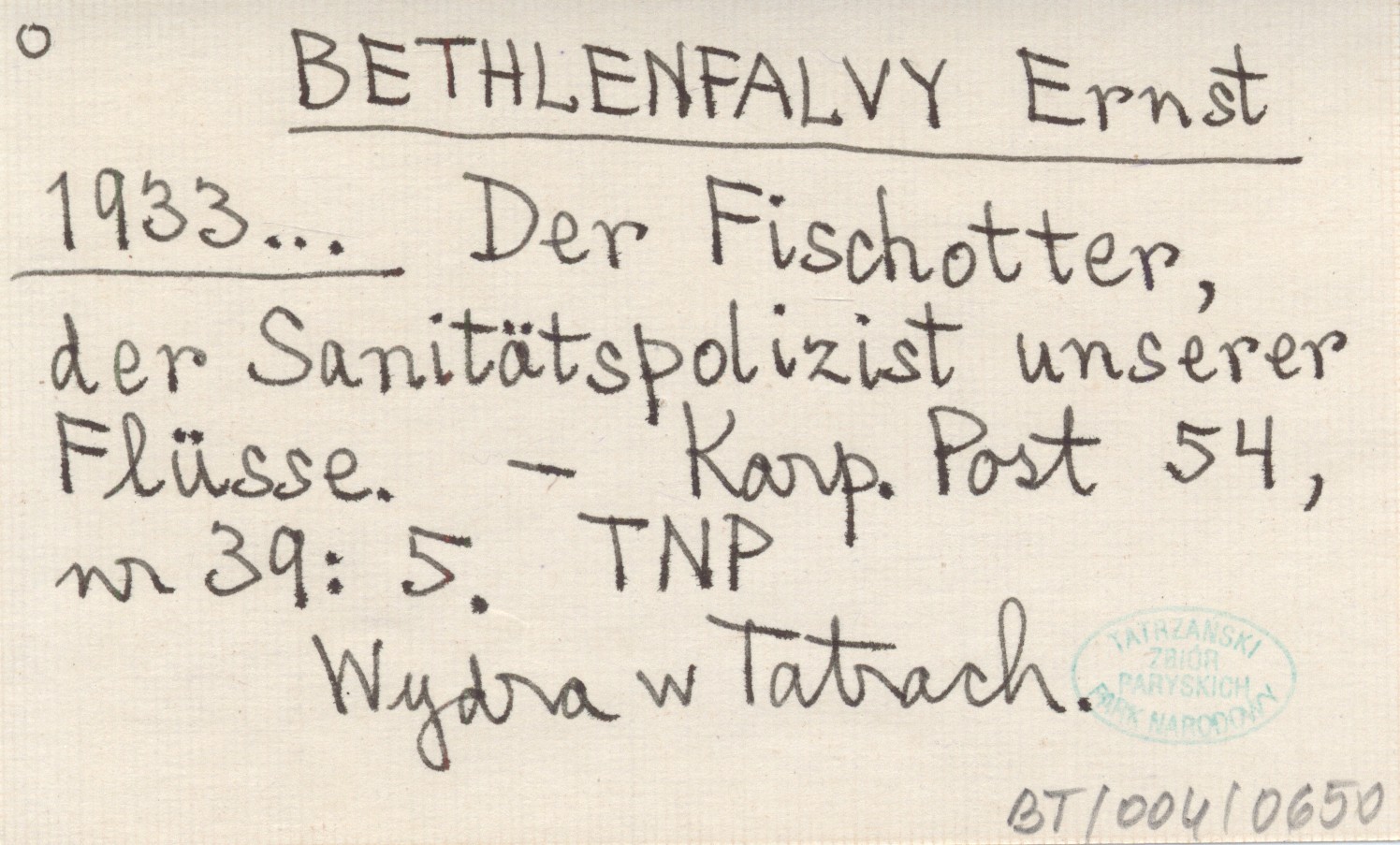 BETHLENFALVY Ernst 1933... Der Fischotter, der Sanitätspolizist unserer Flüsse.