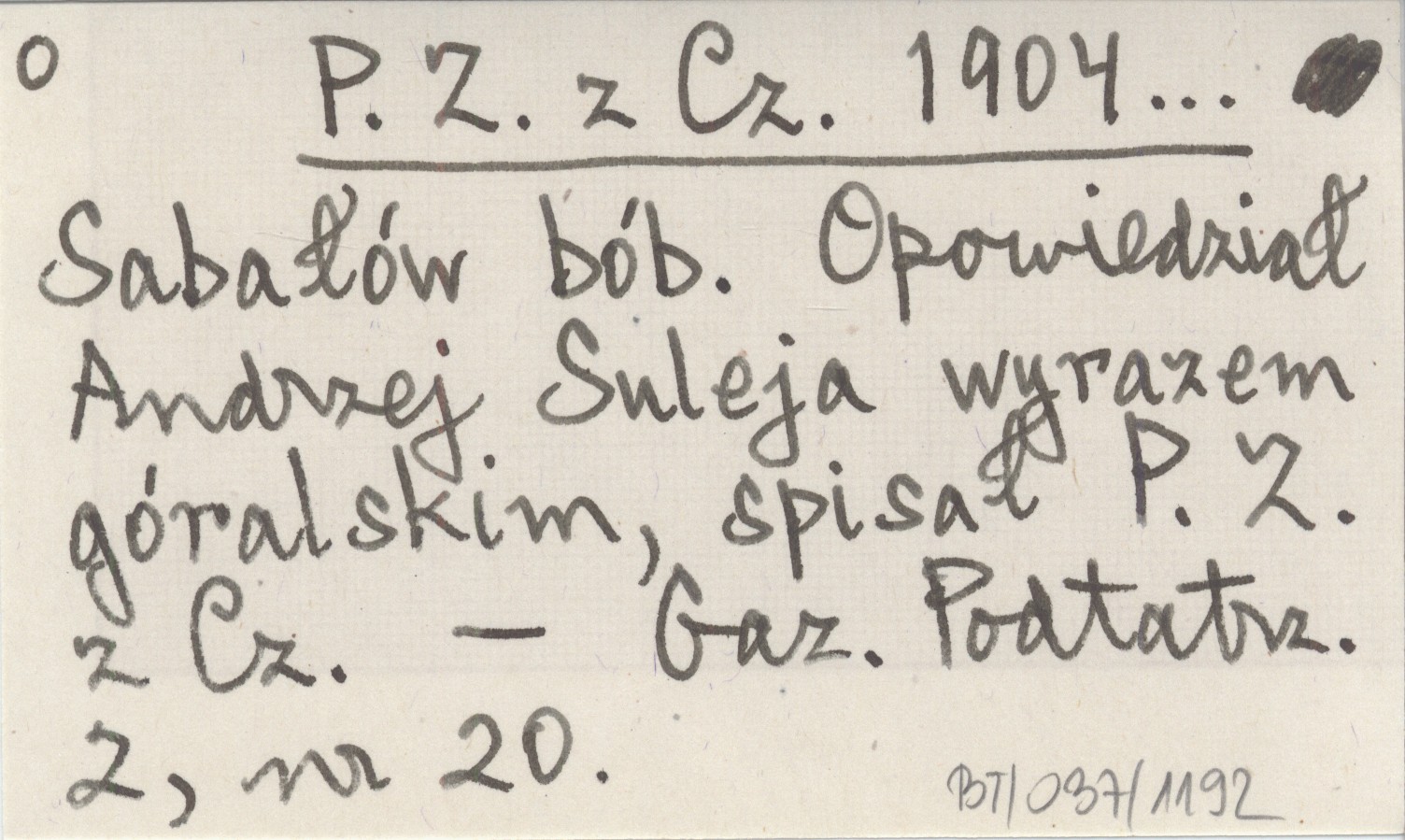 P. Z. z Cz. 1904... Sabałów bób. Opowiedział Andrzej Suleja wyrazem góralskim, spisał P. Z. z Cz.