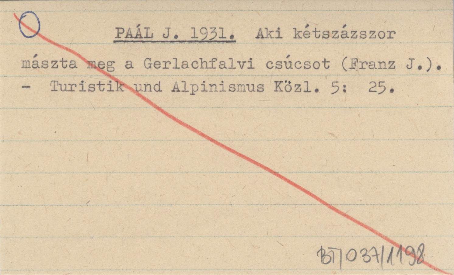 PAÁL J. 1931 Aki kétszázszor mászta meg a Gerlachfalvi csúcsot (Franz J.).