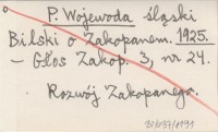 Projekt Digitalizacja fiszek z Bibliografi± Tatr i Podtatrza Witolda Henryka Paryskiego jest finansowany ze ¶rodków Ministra Kultury i Dziedzictwa Narodowego oraz Tatrzańskiego Parku Narodowego.
