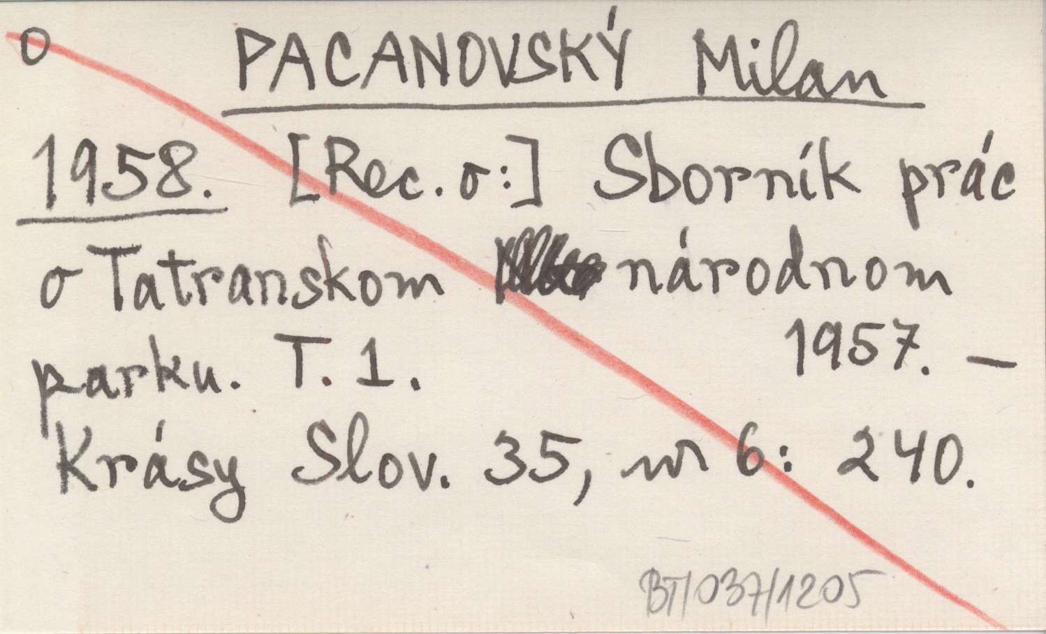 PACANOVSKÝ Milan 1958 Sborník prác o Tatranskom národnom parku. T. 1.