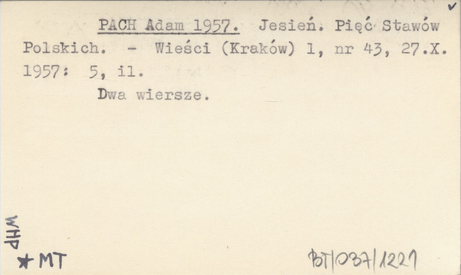 Wieści (Kraków) , 1, nr 43, 27.X.1957: 5, il. Dwa wiersze.