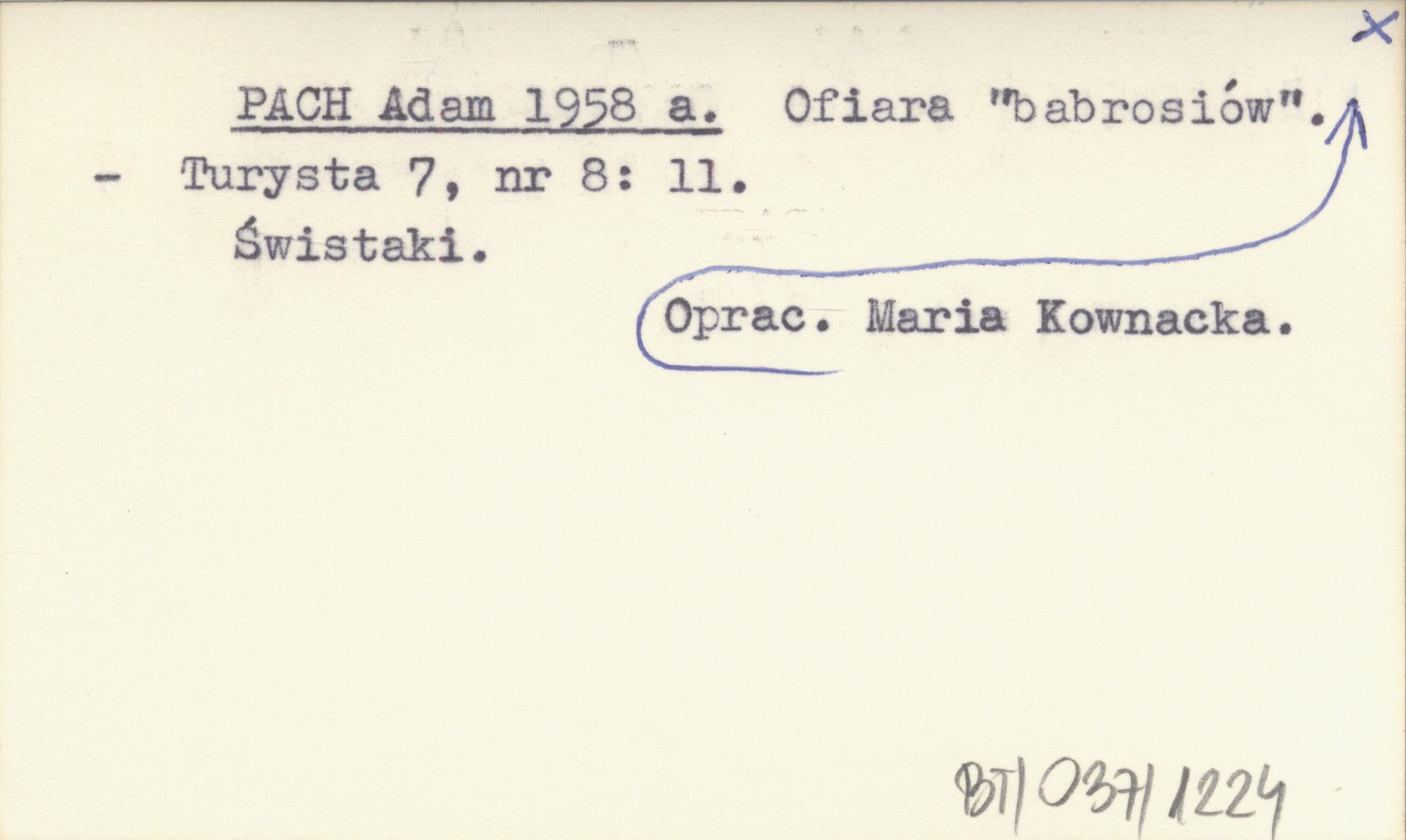 PACH Adam 1958 a Ofiara "babrosiów". Oprac. Maria Kownacka.