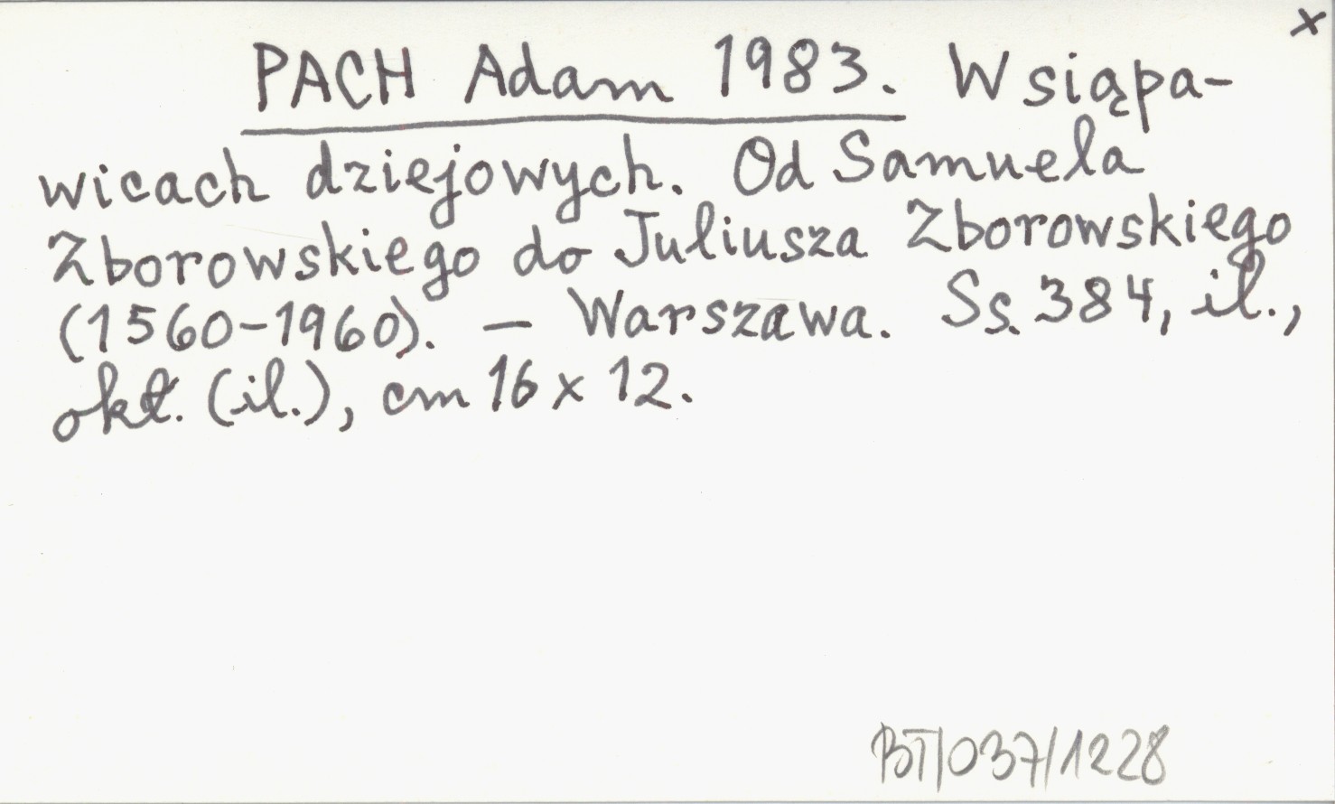 PACH Adam 1983 W siąpawicach dziejowych. Od Samuela Zborowskiego do Juliusza Zborowskiego (1560-1960).