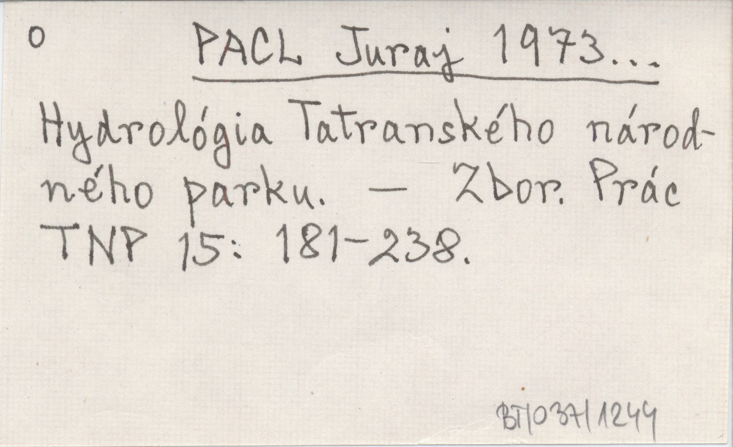 PACL Juraj 1973... Hydrológia Tatranského národného parku.