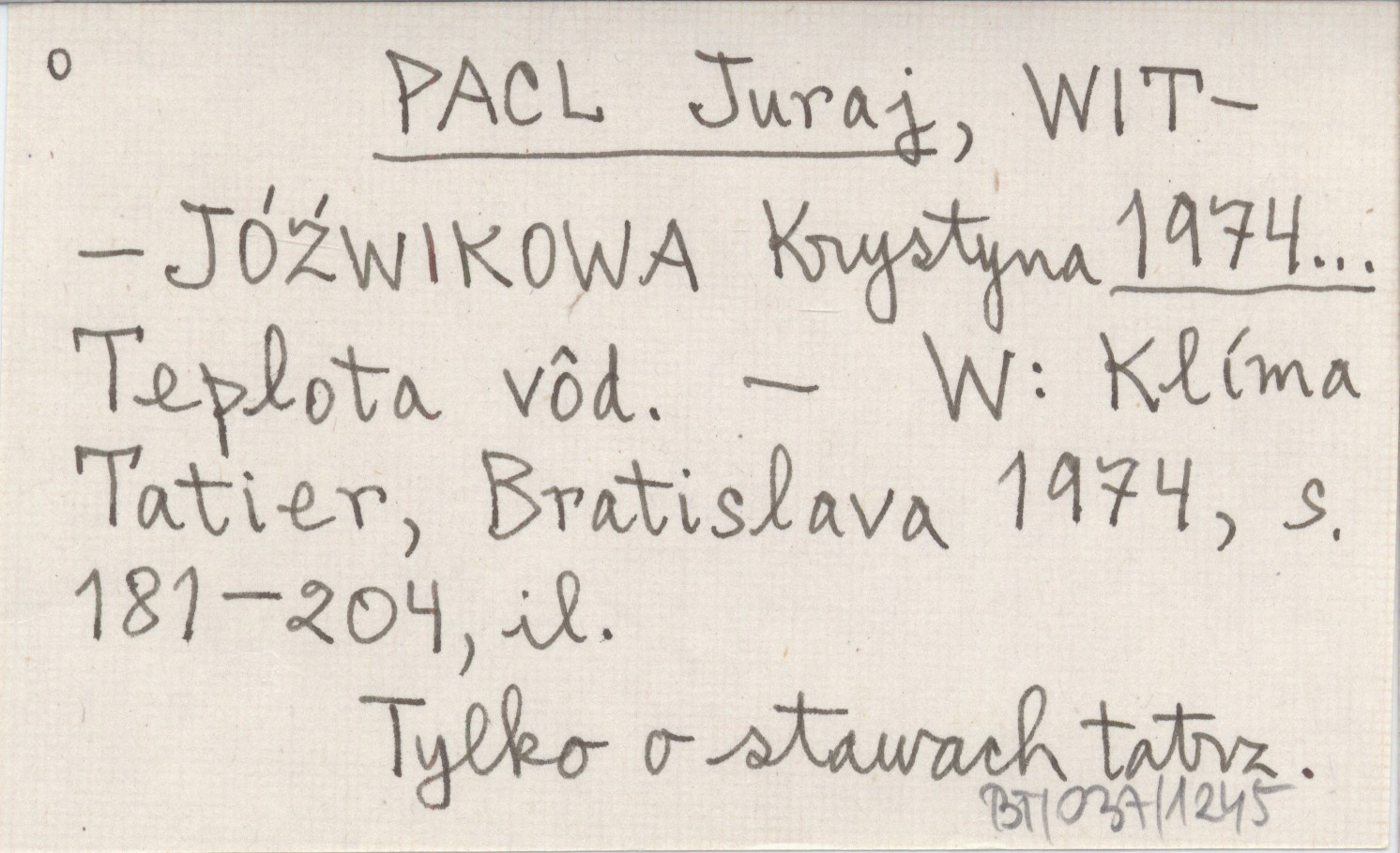 PACL Juraj JÓŹWIKOWA, Krystyna. ; 1974... Teplota vôd.