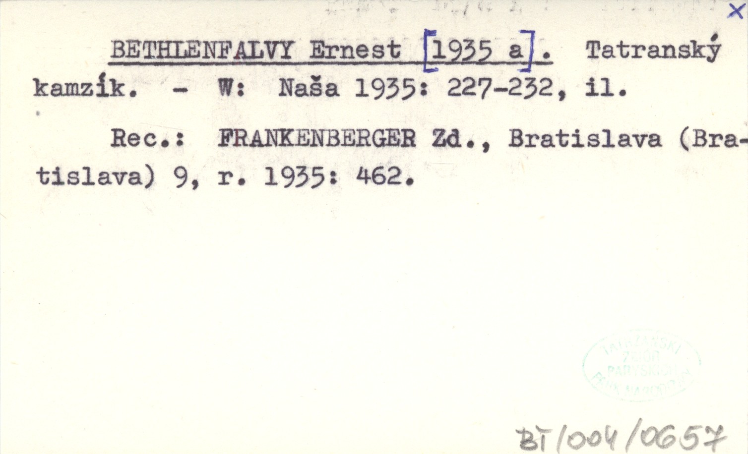 Naša, S. 227-232, il. REC: FRANKENBERGER Zd., Bratislava (Bratislava) 9, r. 1935: 462.