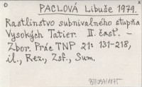 PACLOVÁ Libuše 1979 Rastlinstvo subnivalného štupňa Vysokých Tatier. II. časť.