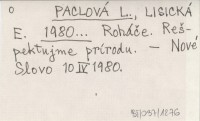 PACLOVÁ L. LISICKÁ, E. ; 1980... Roháče. Rešpektujme prírodu.