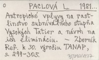 PACLOVÁ L. 1981... Antropické vplyvy na rastlinstvo subniválneho stupňa Vysokých Tatier a návrh na ich elimináciu.