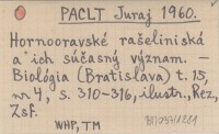 PACLT Juraj 1960 Hornooravské rašeliniská a ich súčasný význam.