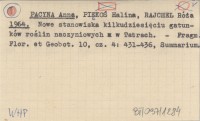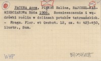 PACYNA Anna PIĘKOŚ, Halina. ; RAJCHEL, Róża. ; 1964 Nowe stanowiska kilkudziesięciu gatunków roślin naczyniowych w Tatrach.