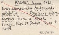 PACYNA Anna 1966 Nowe stanowisko Andromeda polifolia L. i Oxycoccus microcarpus Turcz. w Tatrach.
