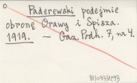 Paderewski podejmie obronę Orawy i Spisza. 1919