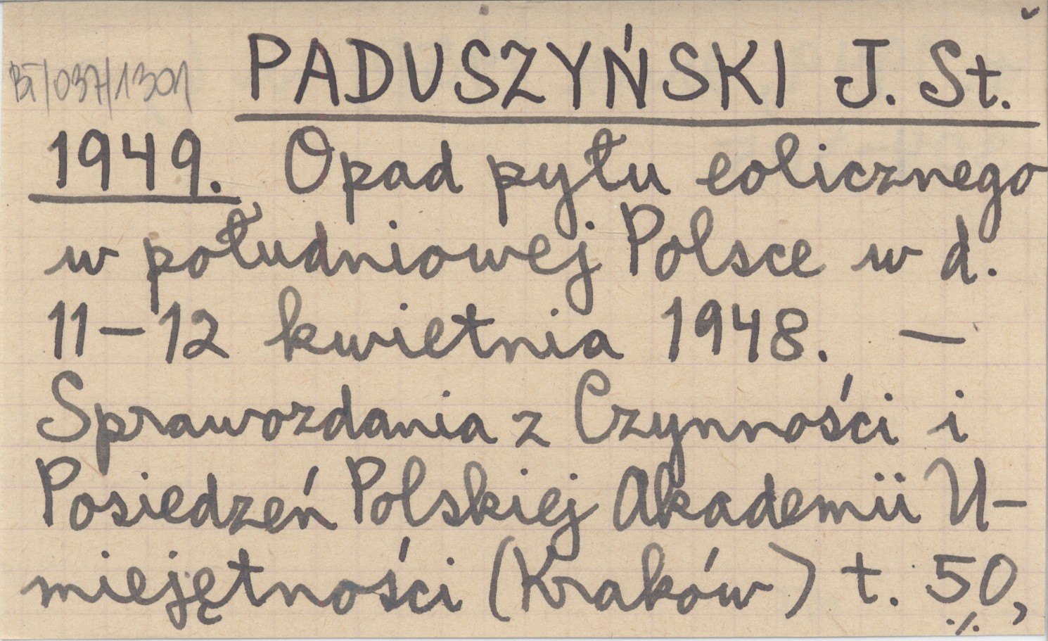 PADUSZYŃSKI J. St. 1949 Opad pyłu eolicznego w południowej Polsce w d. 11-12 kwietnia 1948.