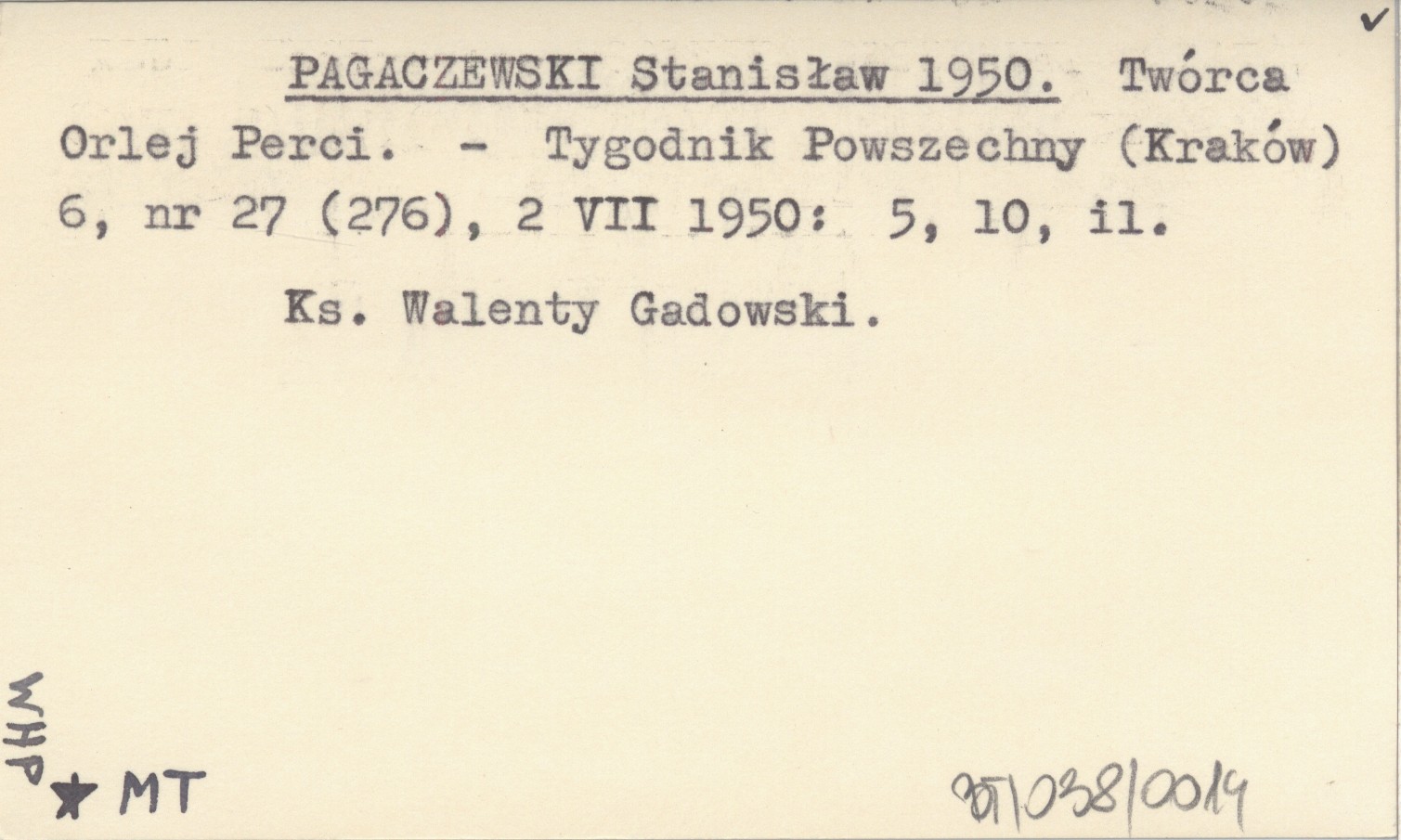 Tygodnik Powszechny (Kraków) , 6, nr 27 (276), 2 VII 1950: 5, 10, il. Ks. Walenty Gadowski.