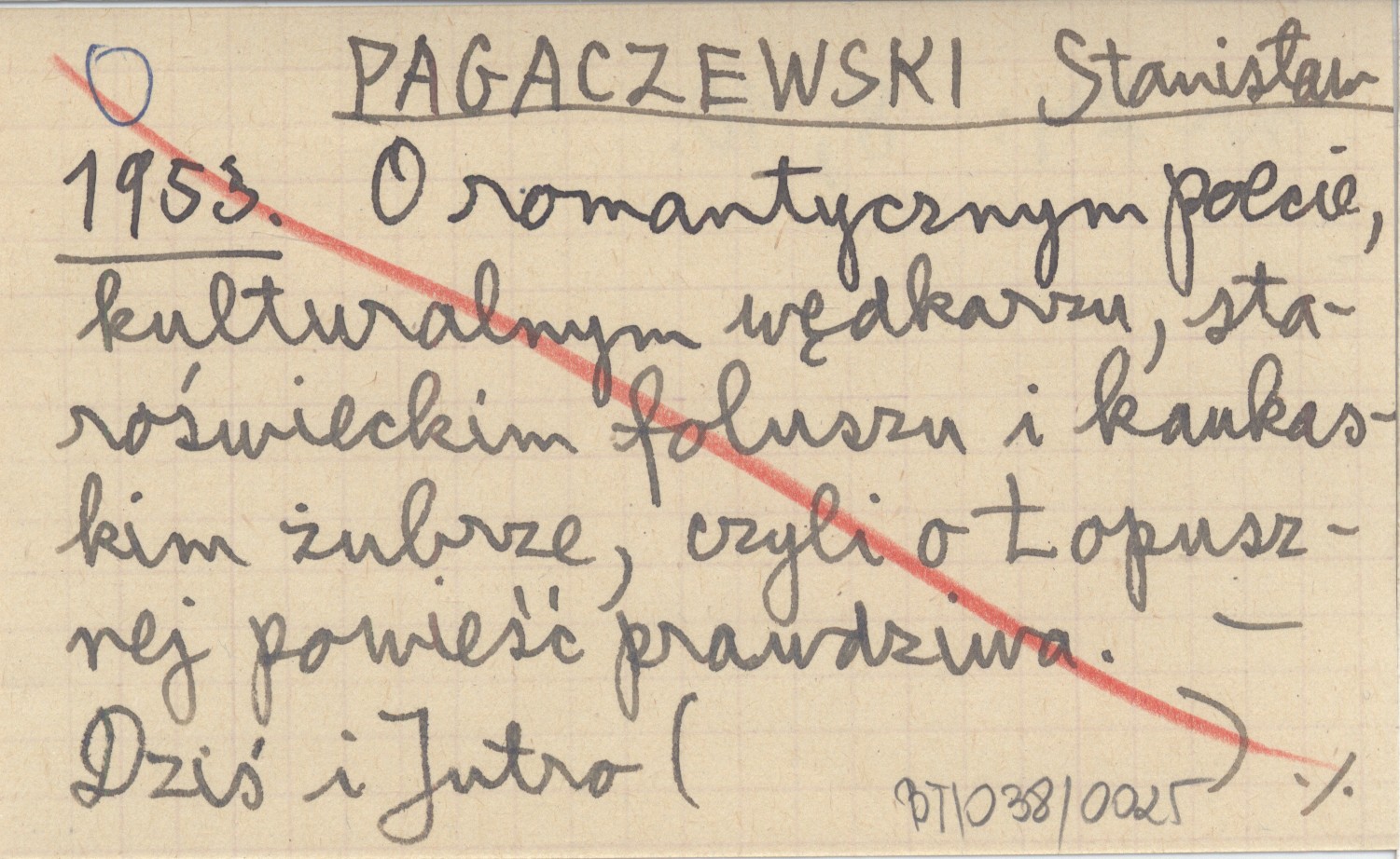 PAGACZEWSKI Stanisław 1953 O romantycznym poecie, kulturalnym wędkarzu, staroświeckim foluszu i kaukaskim żubrze, czyli o Łopusznej powieść prawdziwa.