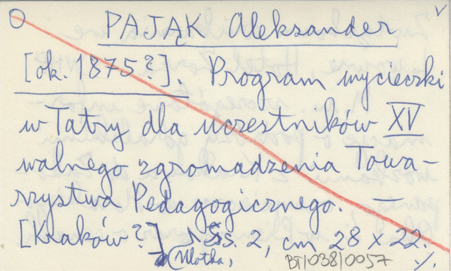 PAJĄK Aleksander [ok. 1875?] Program wycieczki w Tatry dla uczestników XV walnego zgromadzenia Towarzystwa Pedagogicznego.