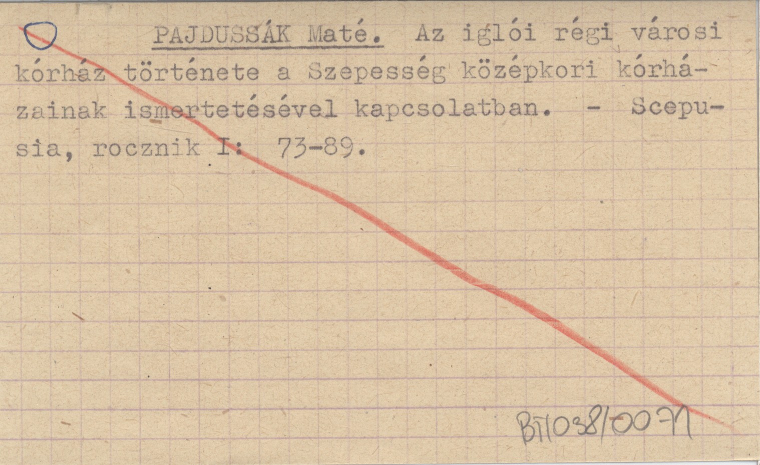 PAJDUSSÁK Maté Az iglói régi városi kórház története a Szepesség középkori kórházainak ismertetésével kapcsolatban.