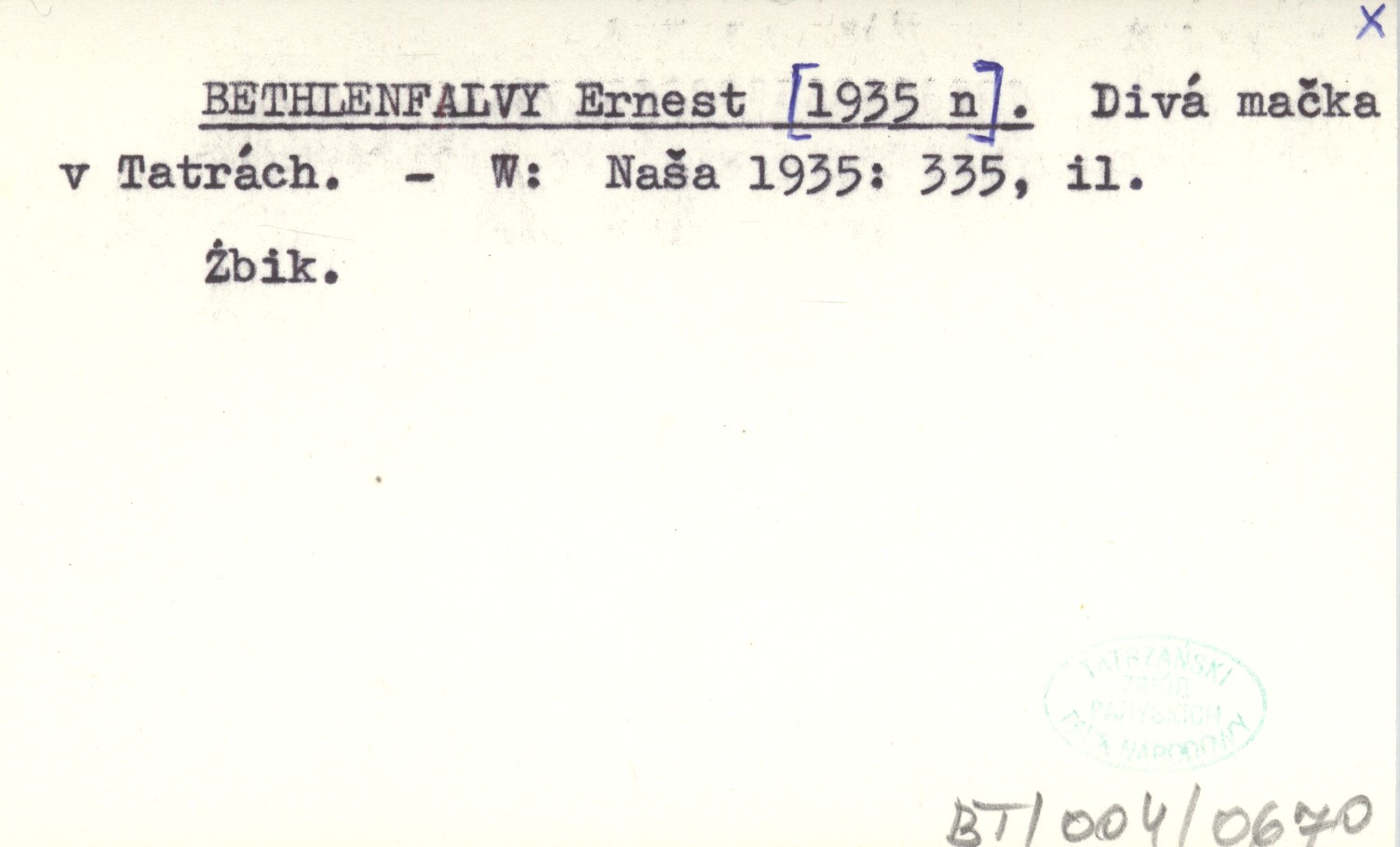 BETHLENFALVY Ernest [1935 n] Divá mačka v Tatrách.