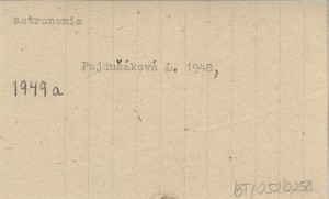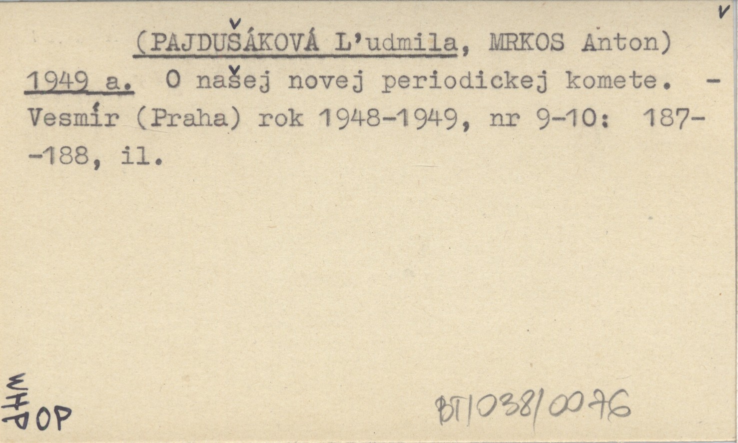 (PAJDUŠÁKOVÁ Ľudmila) (MRKOS, Anton.) ; 1949 a O našej novej periodickej komete.