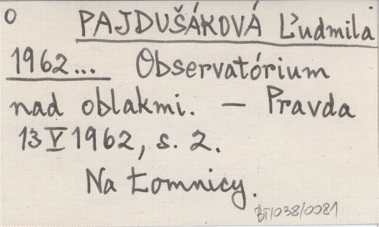 PAJDUŠÁKOVÁ Ľudmila 1962... Observatórium nad oblakmi.
