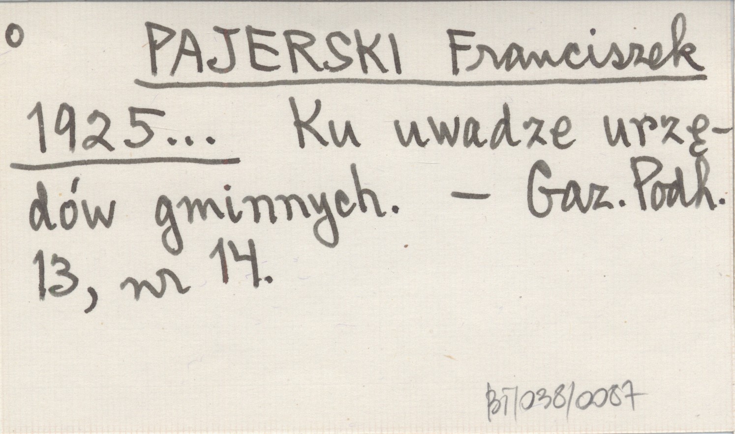 PAJERSKI Franciszek 1925... Ku uwadze urzędów gminnych.