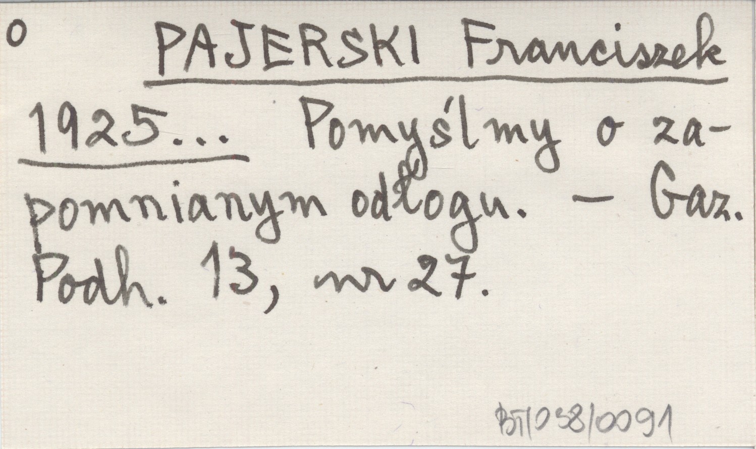 PAJERSKI Franciszek 1925... Pomyślmy o zapomnianym odłogu.