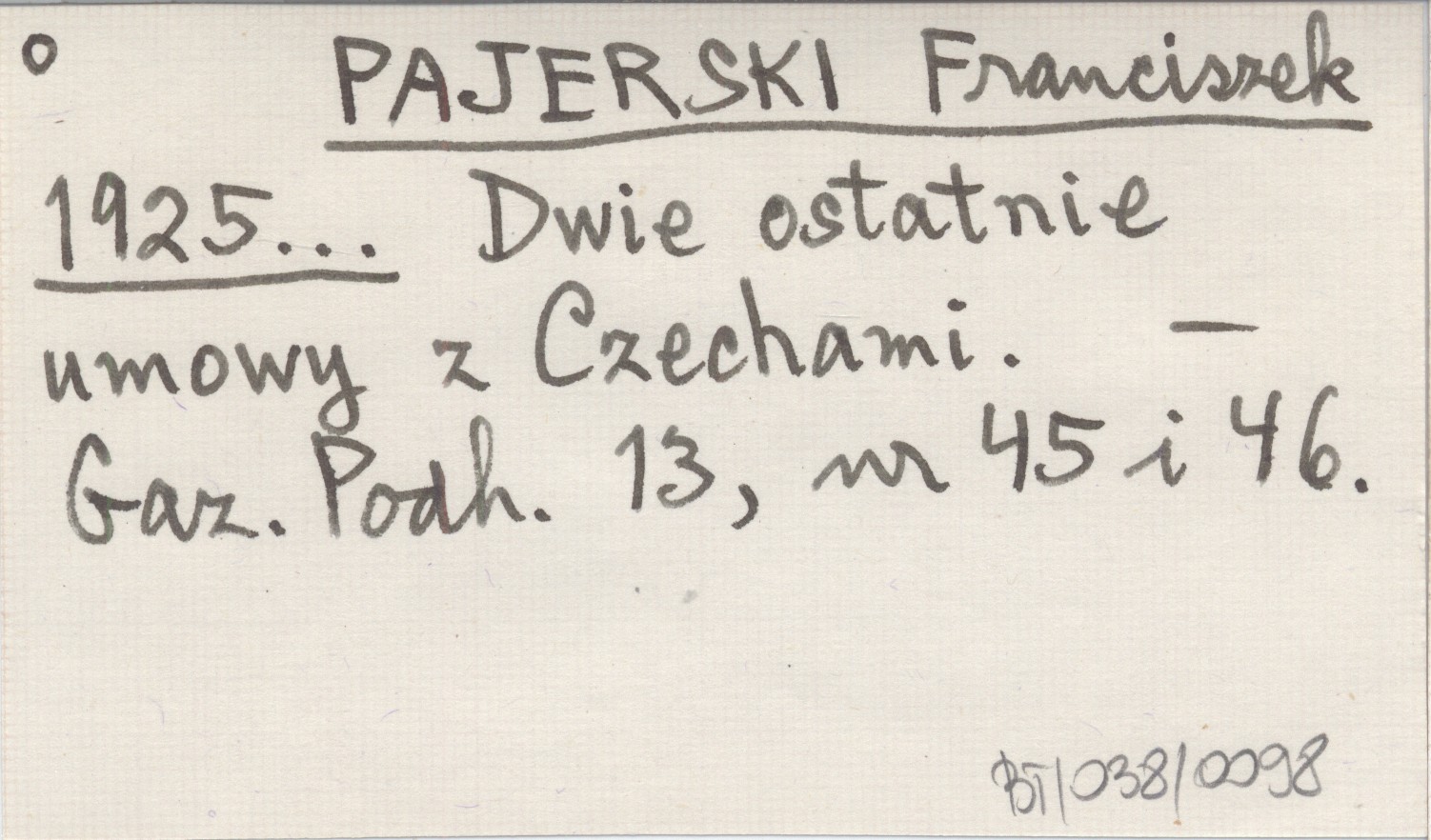 PAJERSKI Franciszek 1925... Dwie ostatnie umowy z Czechami.