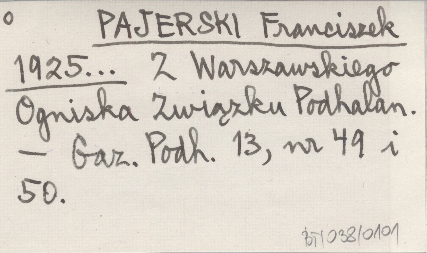PAJERSKI Franciszek 1925... Z Warszawskiego Ogniska Związku Podhalan.
