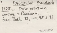 PAJERSKI Franciszek 1925... Dwie ostatnie umowy z Czechami.