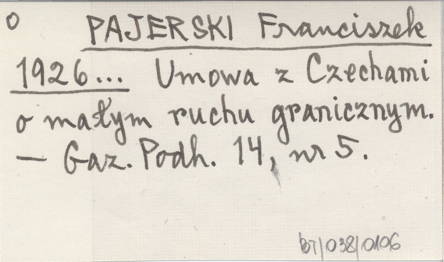 PAJERSKI Franciszek 1926... Umowa z Czechami o małym ruchu granicznym.