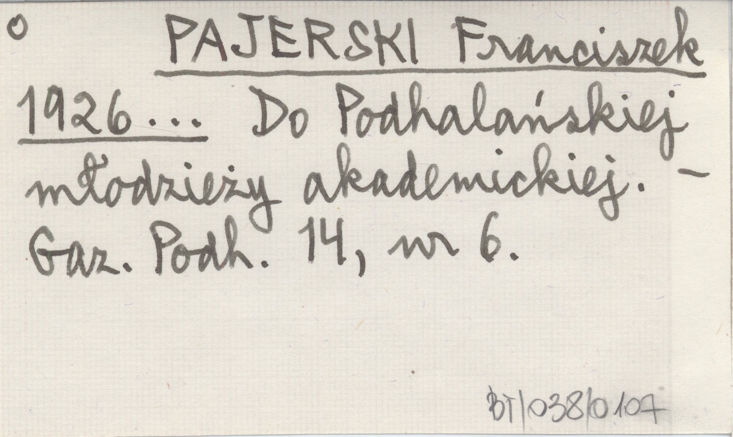 PAJERSKI Franciszek 1926... Do Podhalańskiej młodzieży akademickiej.