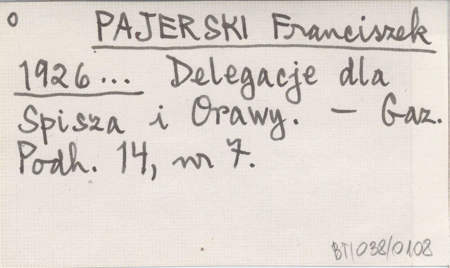 PAJERSKI Franciszek 1926... Delegacje dla Spisza i Orawy.