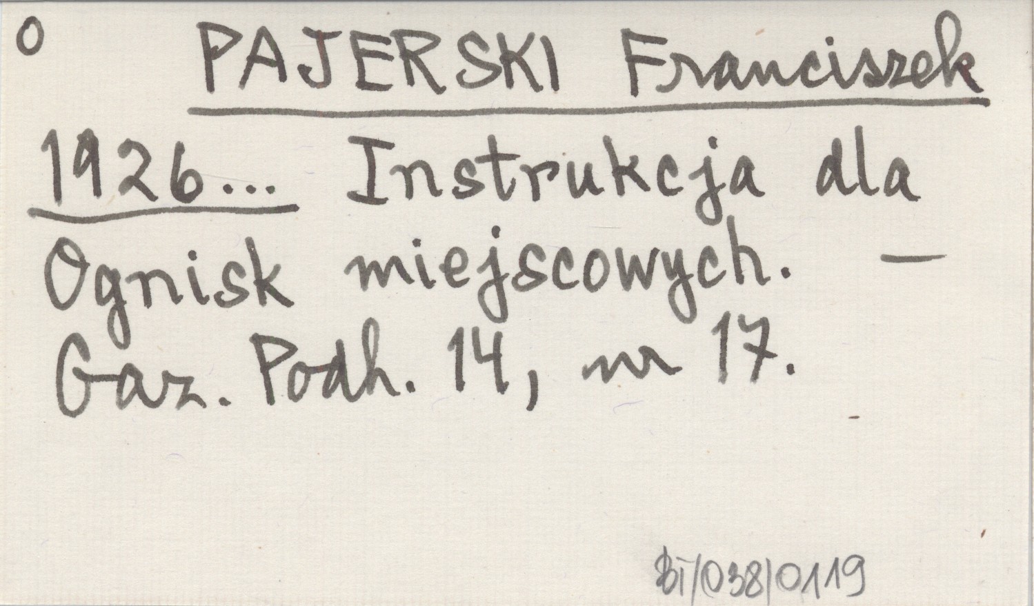 PAJERSKI Franciszek 1926... Instrukcja dla Ognisk miejscowych.