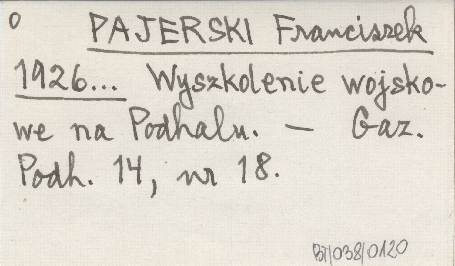 PAJERSKI Franciszek 1926... Wyszkolenie wojskowe na Podhalu.