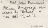 PAJERSKI Franciszek 1926... Emigracja wiosenna do Niemiec.