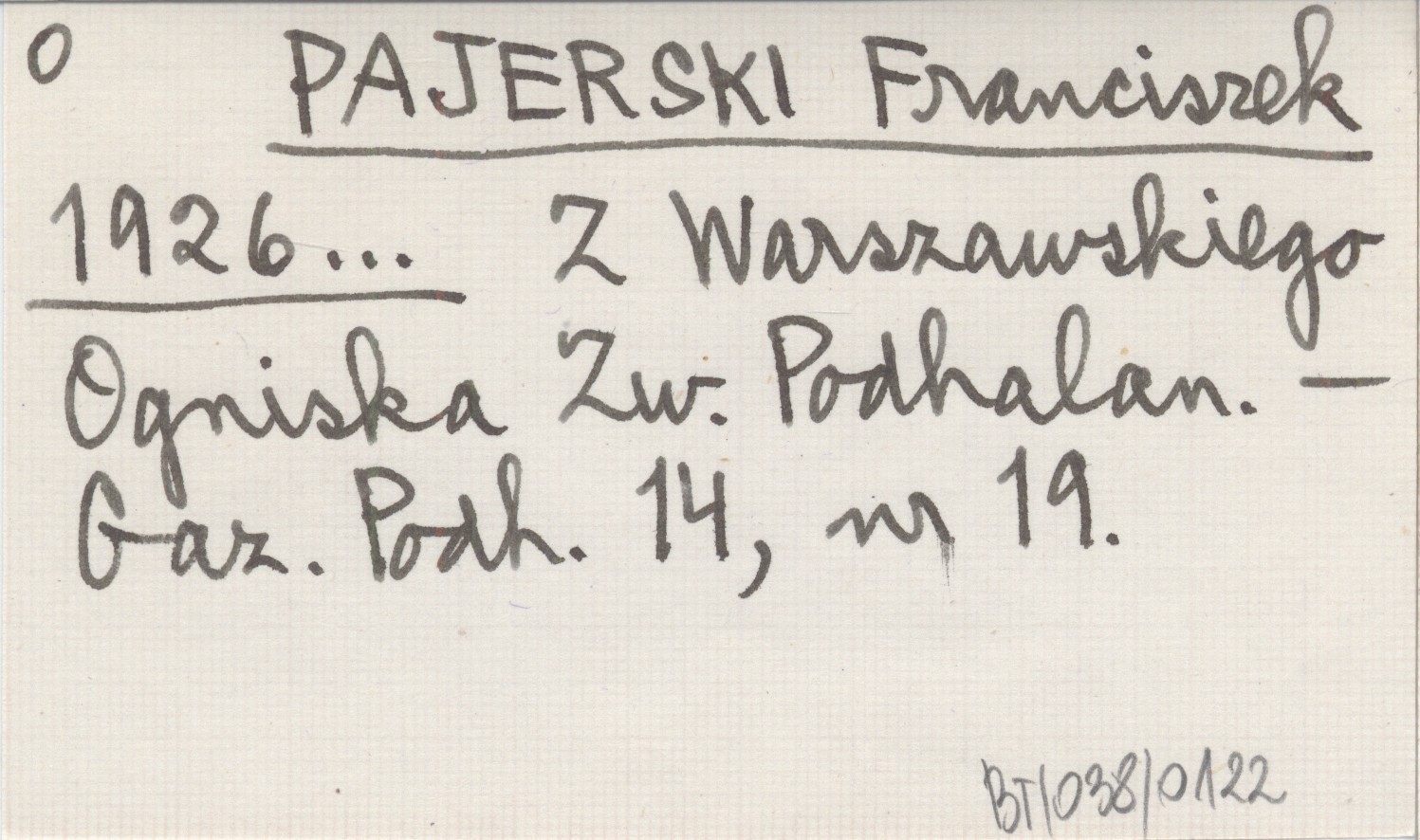 PAJERSKI Franciszek 1926... Z Warszawskiego Ogniska Zw. Podhalan.