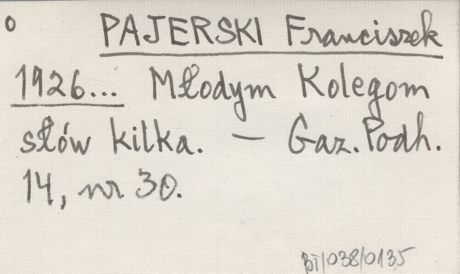 PAJERSKI Franciszek 1926... Młodym Kolegom słów kilka.