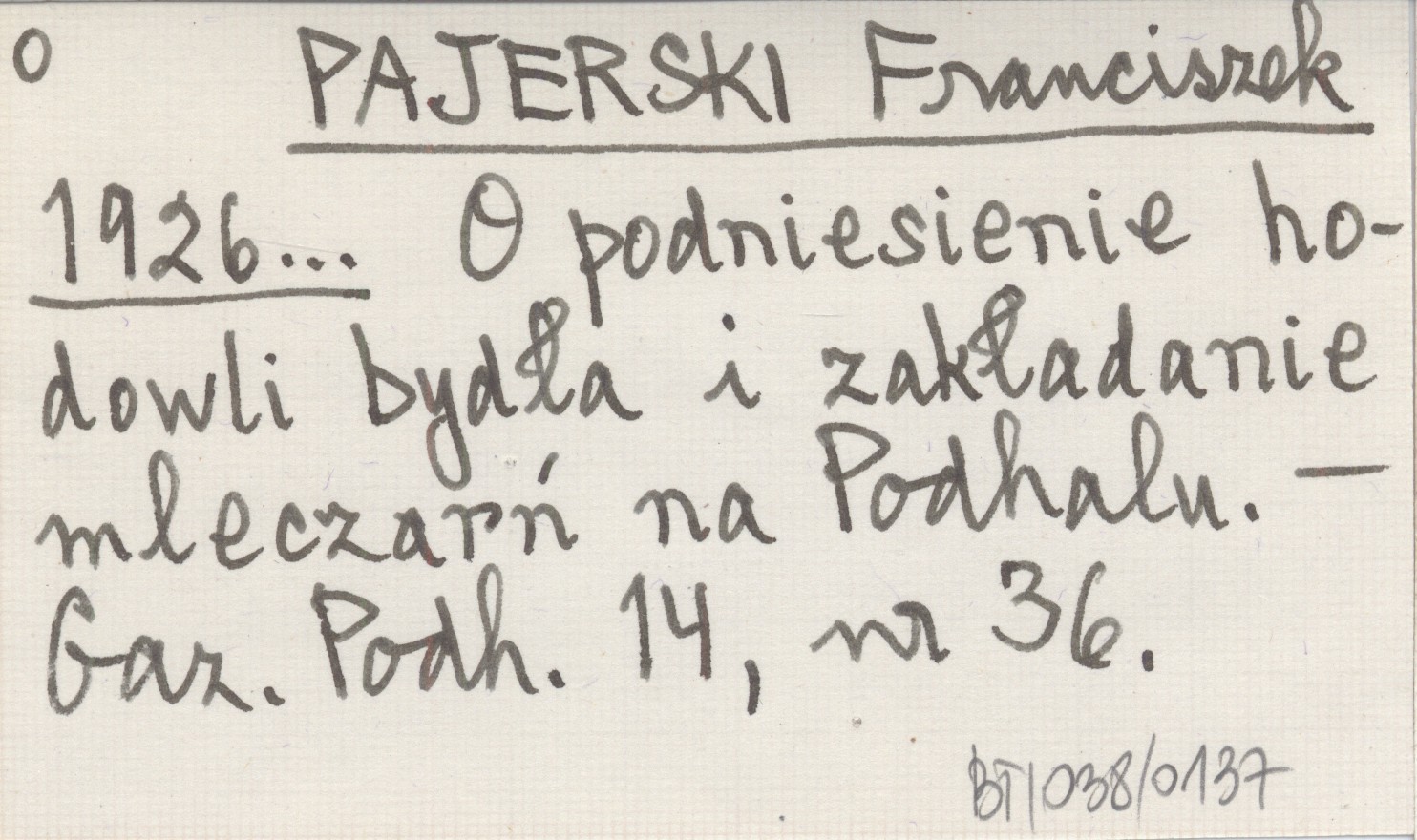 PAJERSKI Franciszek 1926... O podniesienie hodowli bydła i zakładanie mleczarń na Podhalu.